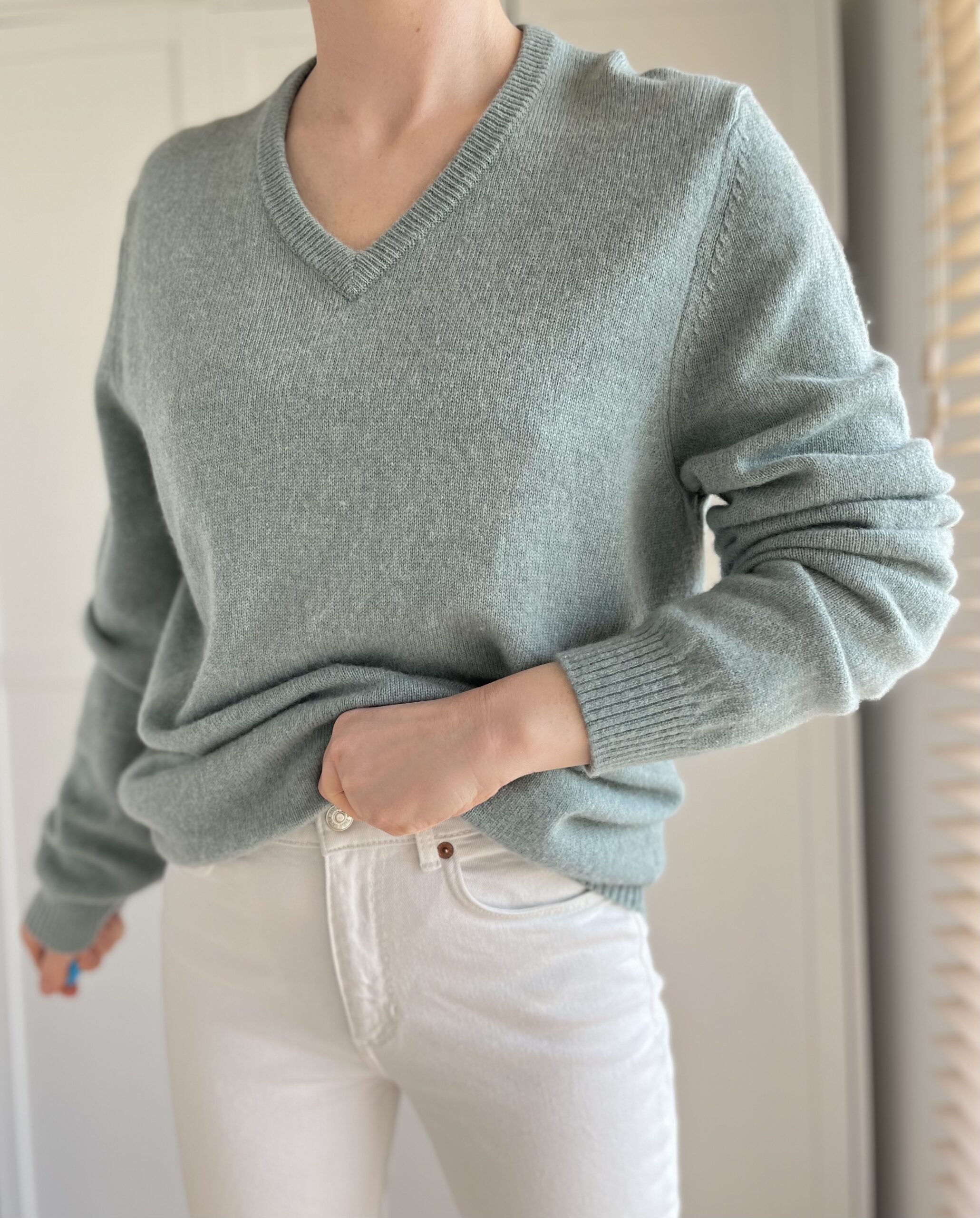 Miętowy sweter John Lewis 90% merino 10% kaszmir