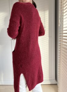 Bordowa narzutka 30% alpaka, 21% wełna, 37% poliamid, 7% akryl, 5% elastan