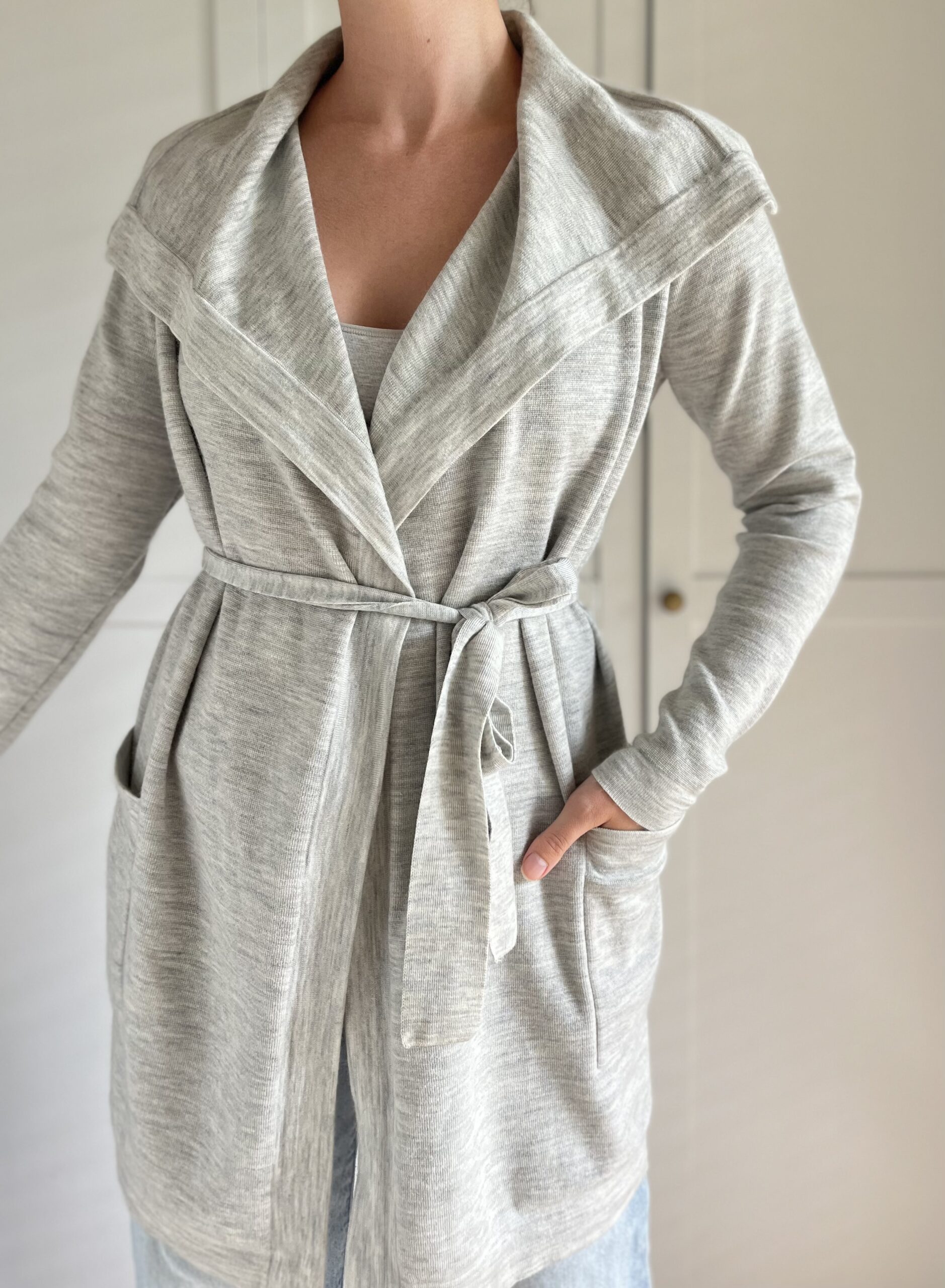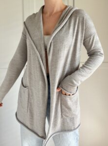 Szara narzutka GAP z kapturem 100% merino