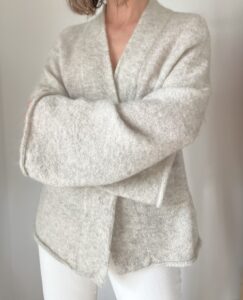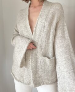 Szara narzutka/kimono z kieszeniami 54% moher  21% wełna 23% poliamid 2% elastan