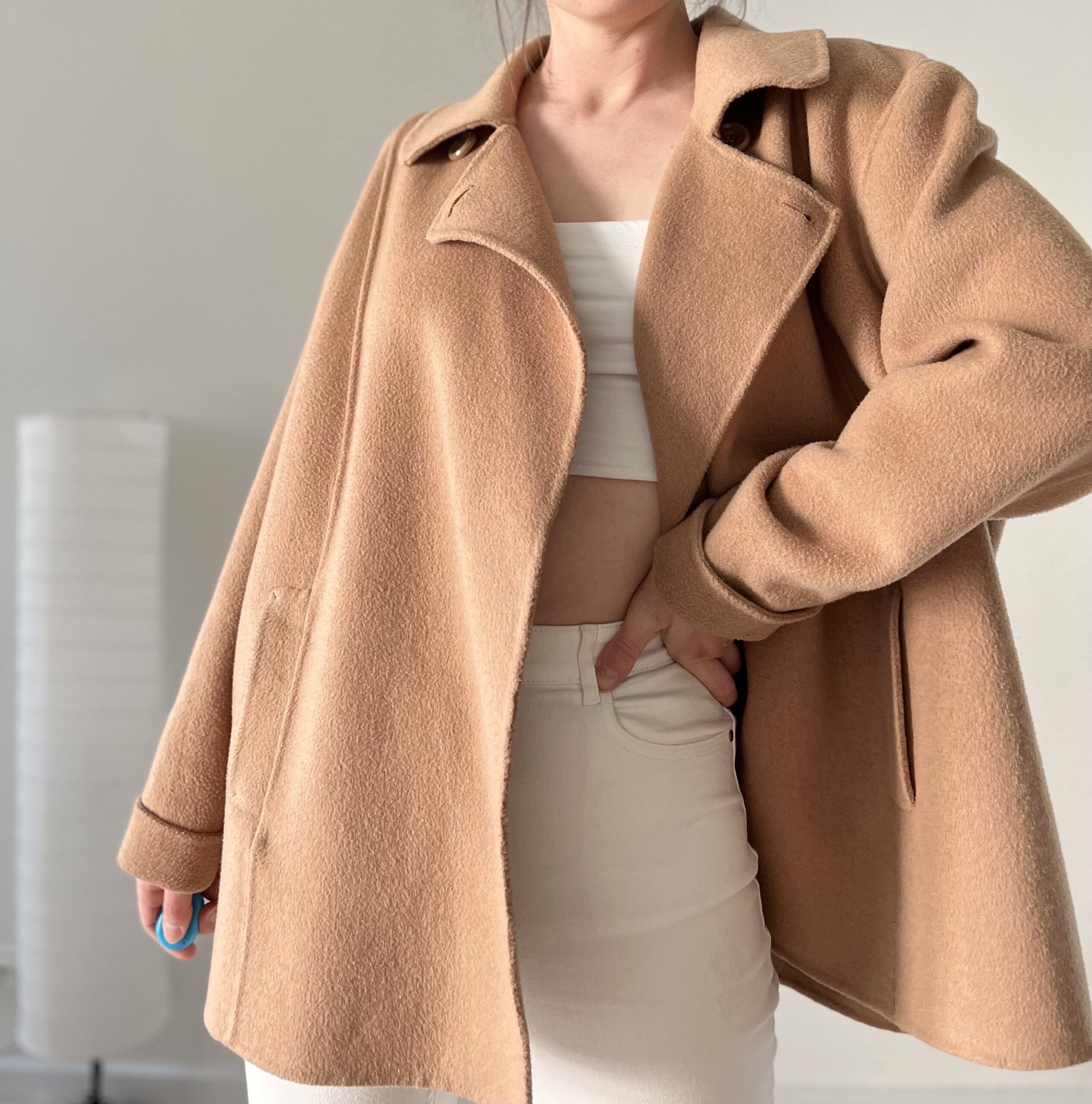 płaszczyk na jeden guzik przy szyi