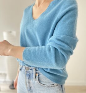 Niebieski puchaty sweterek 100% kaszmir.