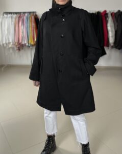 Plaszcz 60% welna, 10% wiskoza, 30% poliester, podszewka polister,certyfikat Woolmark.