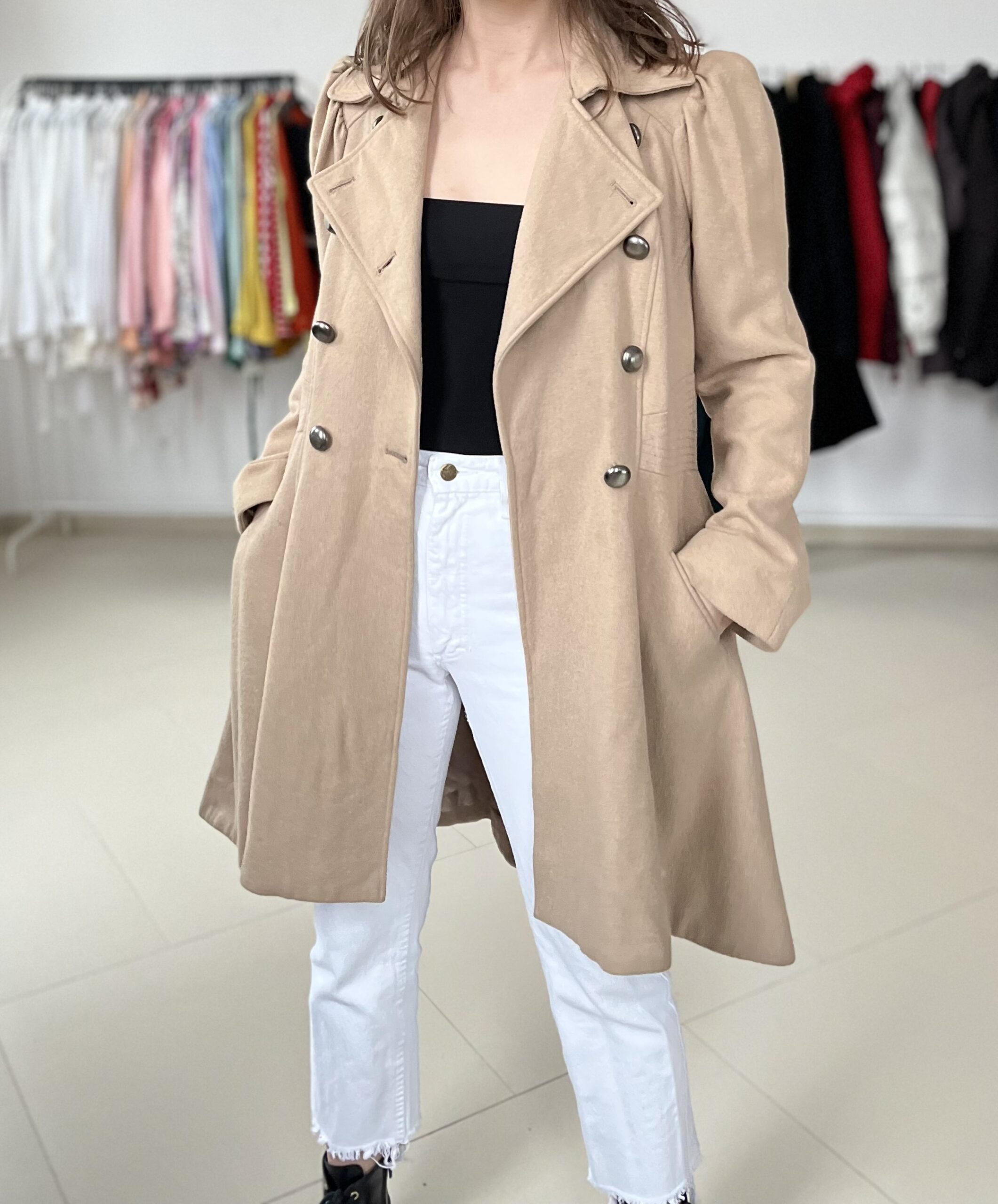 Plaszcz ( 60% welna, 40% wiskoza) podszewka poliester.