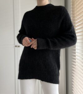 Puchaty długi grafitowy sweterek 33% moher, 32% wełna, 32% poliamid, 3% elastan