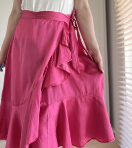 Różowa spódnica skandynawskiej marki Fine Copenhagen 70% wiskoza 30% bawełna