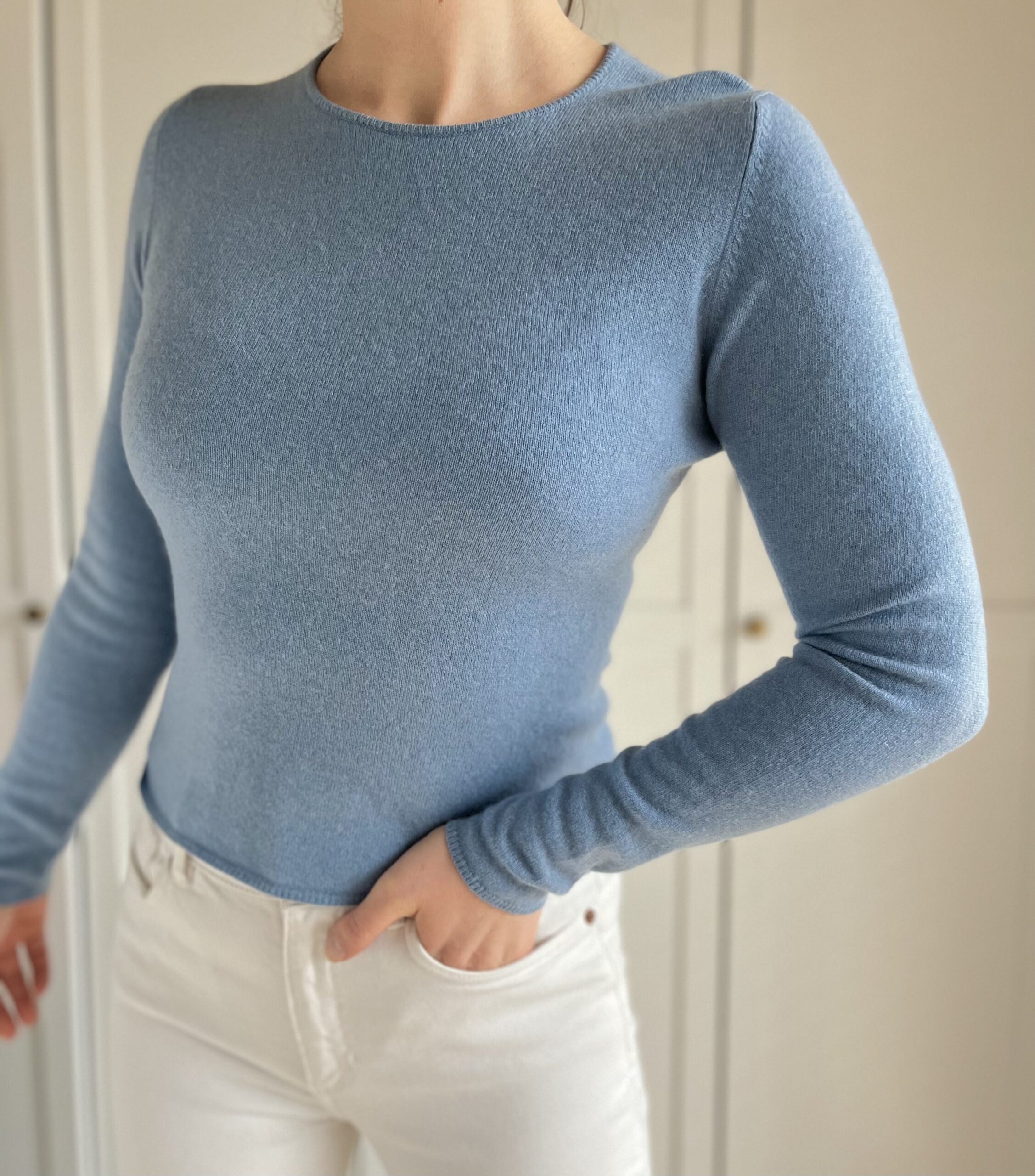 Różowy sweterek z okrągłym dekoltem 100% kaszmir