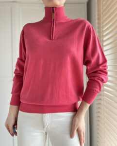 Różowy sweterek ze stójką 100% wełna