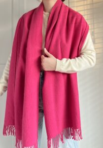 Duży szalik w soczystym różowym kolorze 100% wełna