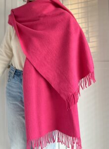 Duży szalik w soczystym różowym kolorze 100% wełna