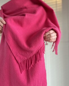 Różowy szal 100% wełna 60×200
