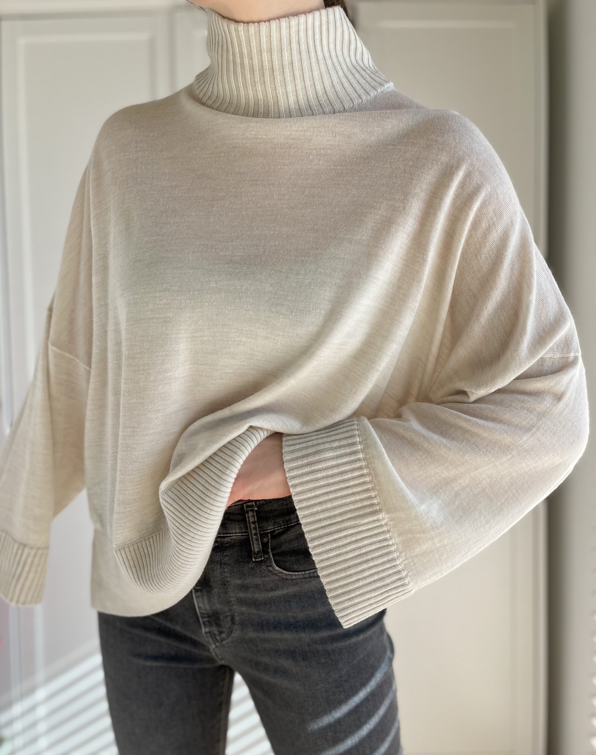 Śmietankowy gruby sweterek Uniqlo 100% wełna