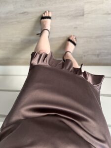 Czekoladowa spodnica na gumce NOWA Z METKA 100% jedwab, podszewka jedwab.