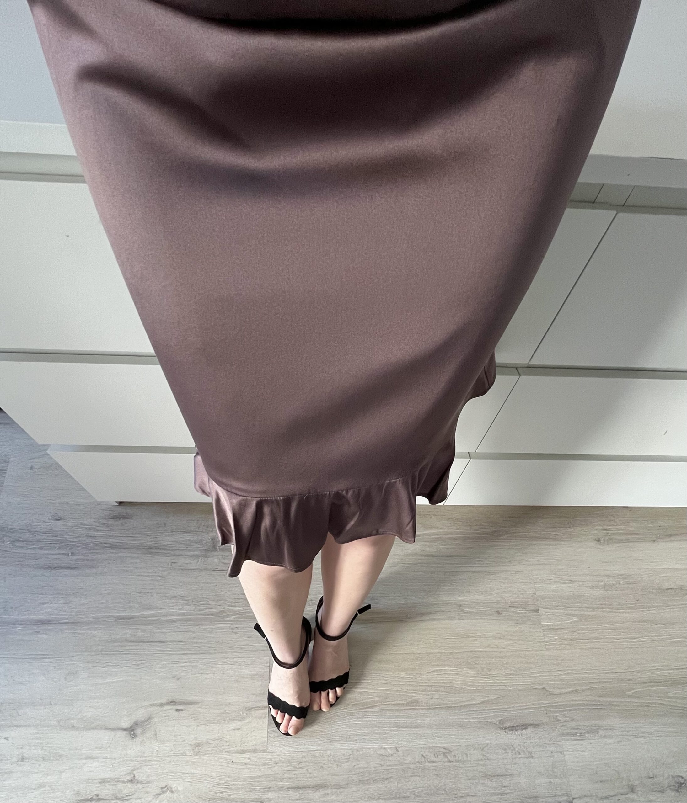 Czekoladowa spodnica na gumce NOWA Z METKA 100% jedwab, podszewka jedwab.