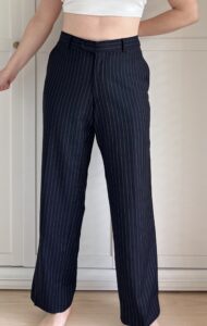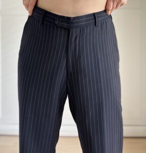 Granatowe spodnie w paski 100% wełna