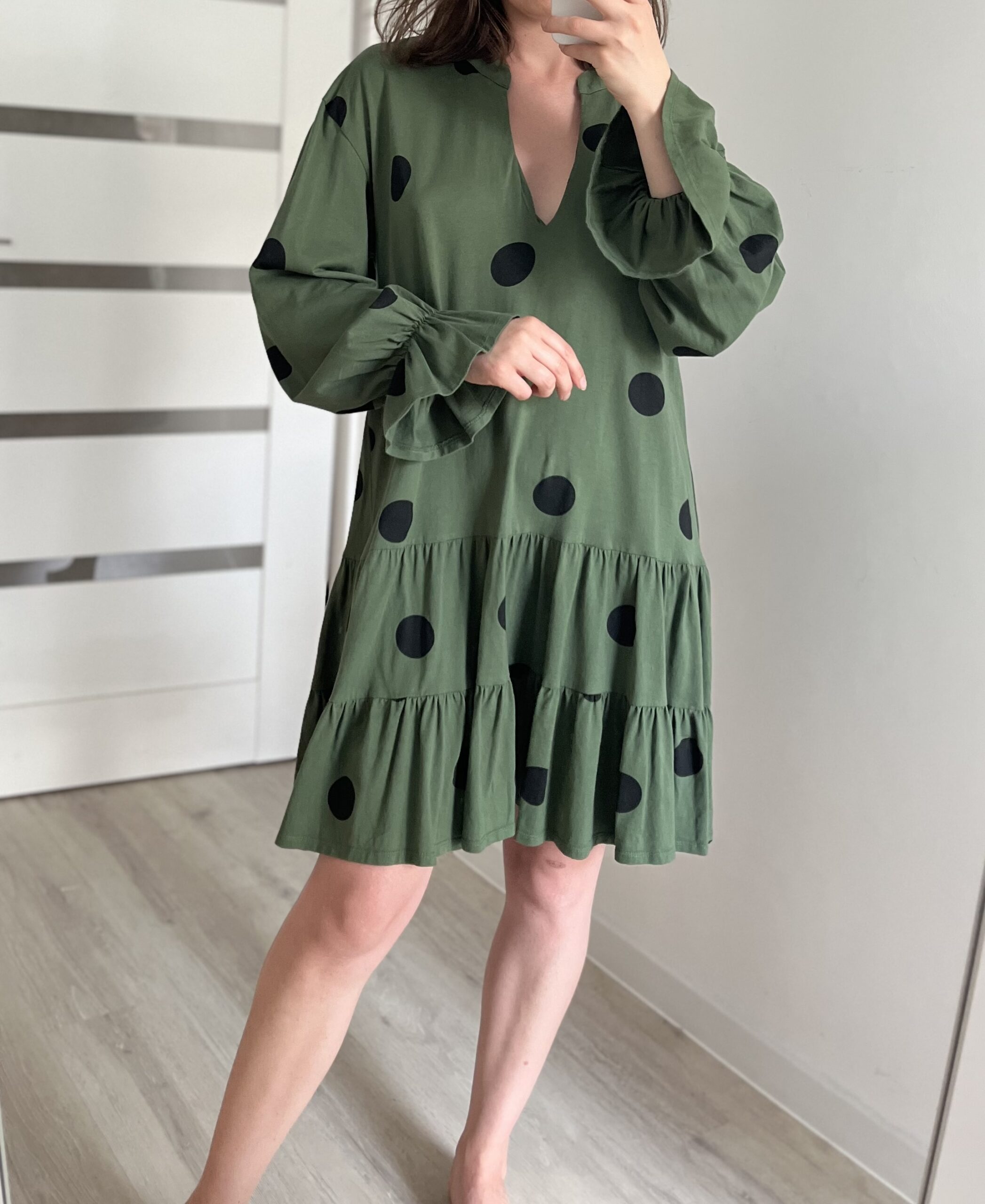 Ciemnozielona sukienka w grochy Asos 100% bawełna