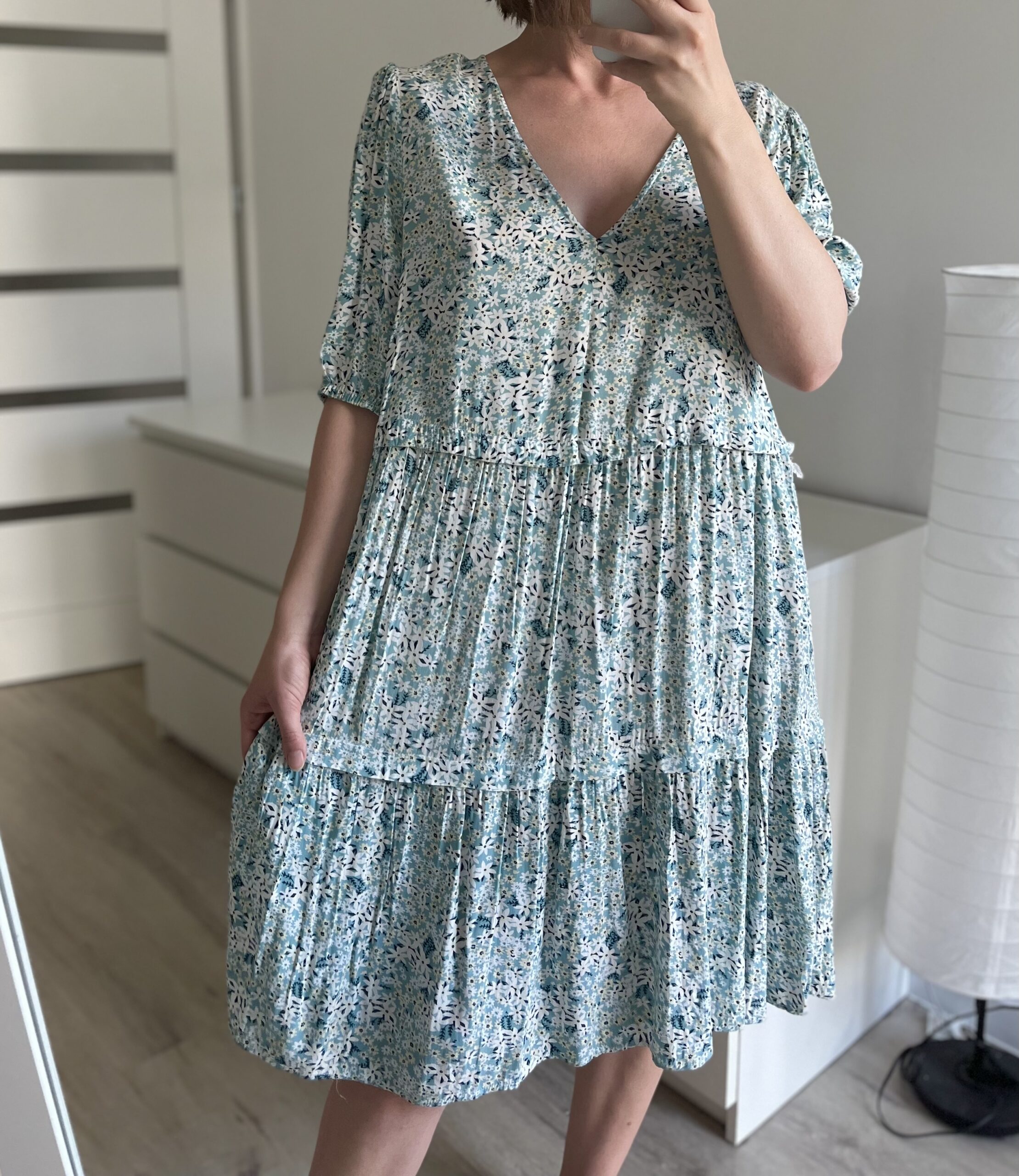 Błękitna sukienka w drobne kwiatki 100% wiskoza