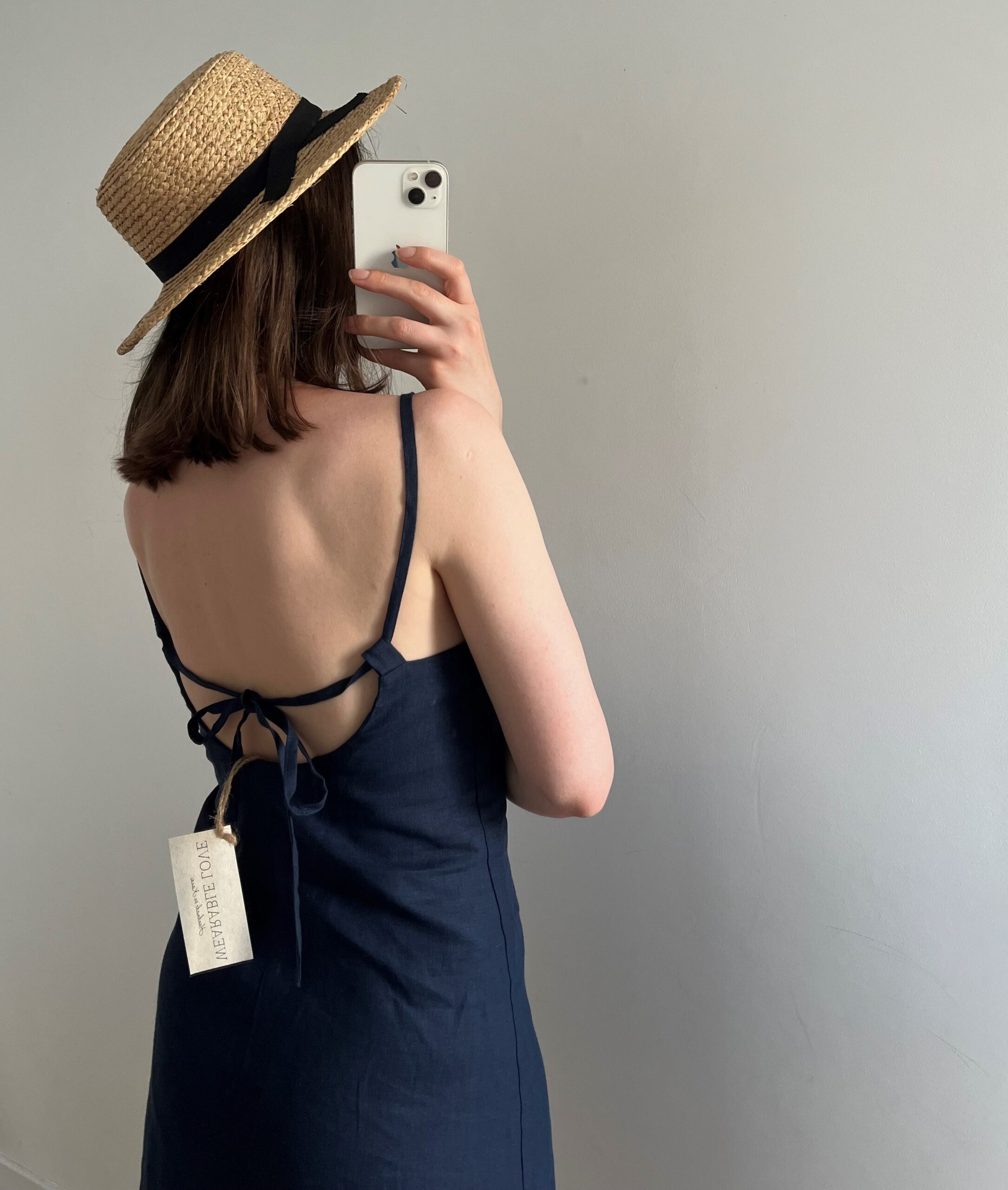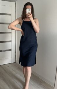Granatowa  minimalistyczna sukienka szyta ręcznie na Hawajach 🙂 marka Mauna Wear 100% len