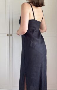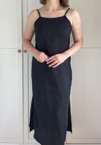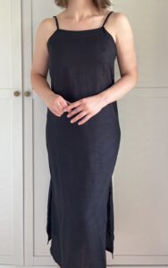 Minimalistyczna czarna sukienka 100% len balijskiej marki Nataoka szyjącej z lnu