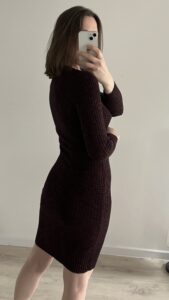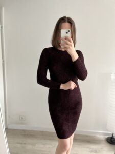Sukienka bordowa w prążki 67% wiskoza.