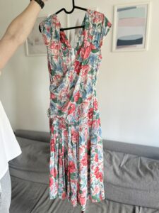 Sukienka real vintage handmade z obnizonym stanem, wiskoza