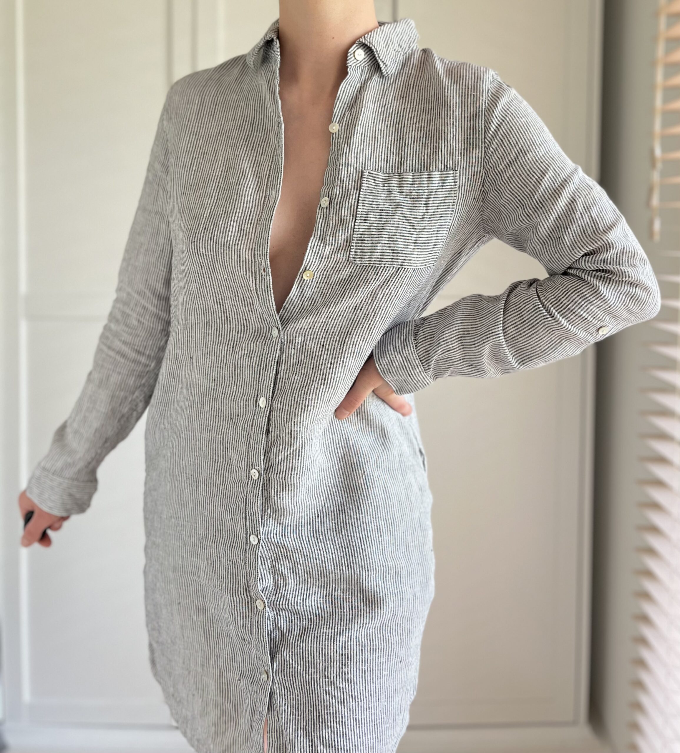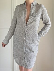 Sukienka w paski marki premium Tahari 100% len