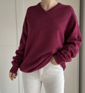 Sweter ciemny roz 100% welna, certyfikat Woolmark