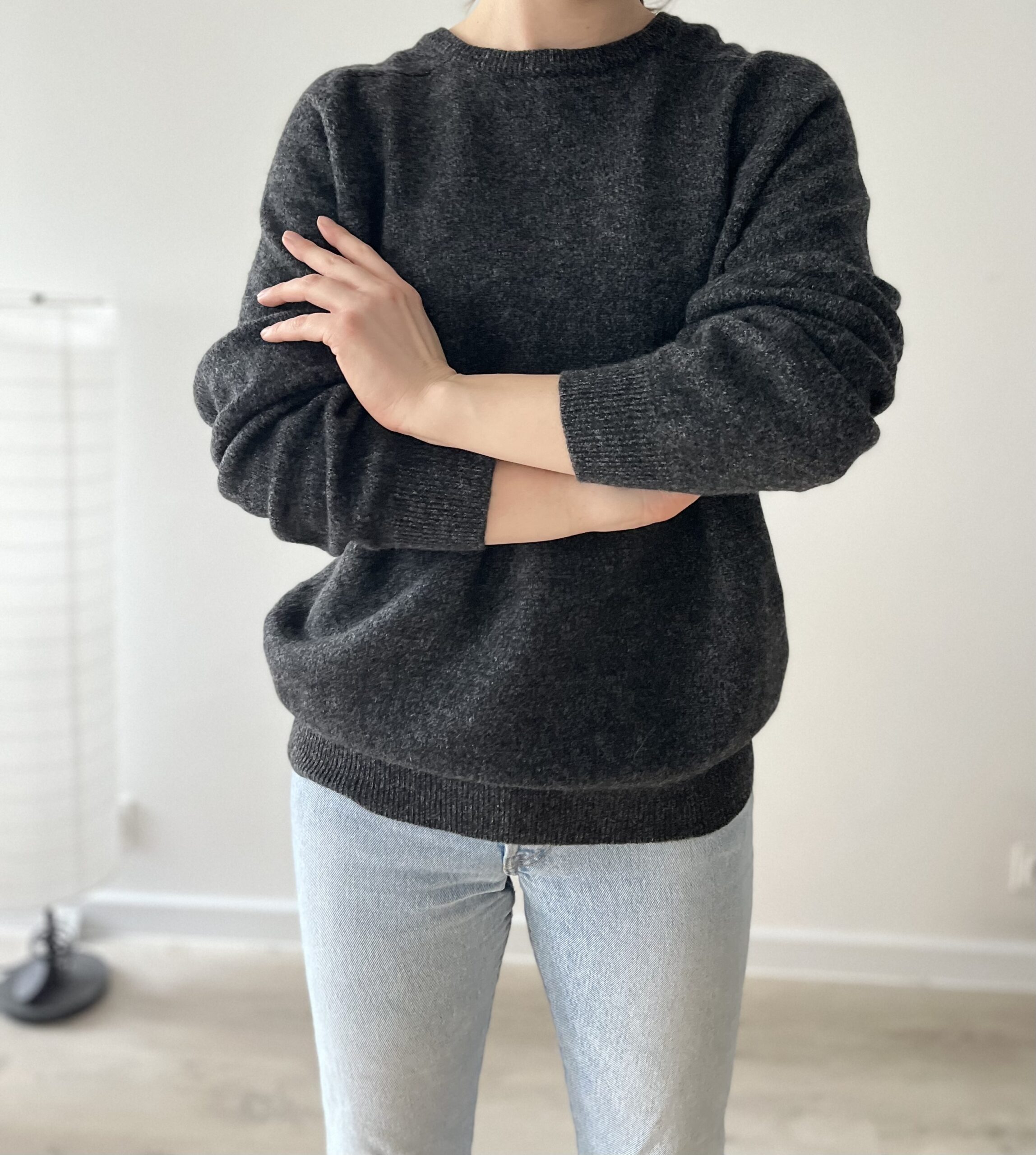 Grafitowy sweterek z certyfikatem Woolmark 100% wełna