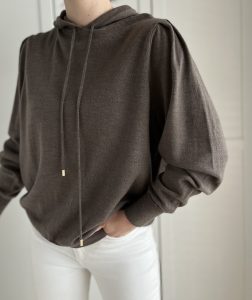 Sweterek z kapturem i bufkami na rękawach Marie Philippe 100% merino