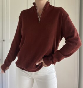 Bordowy sweter z suwakiem szwedzkiej marki Stenstroms 100% merino
