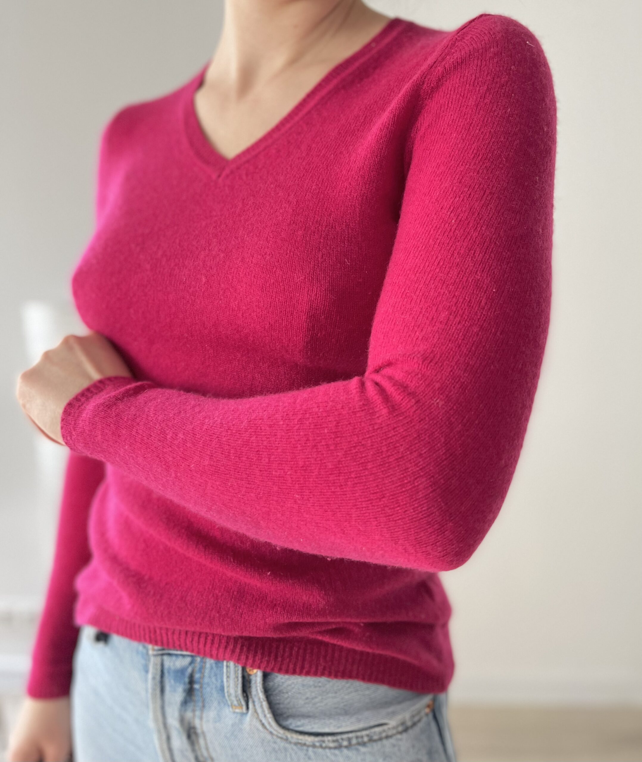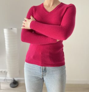 Fuksjowy sweterek Adrienne Vittadini  100% kaszmir.