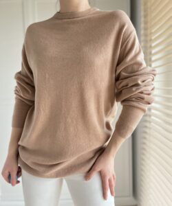 Długi sweterek w kolorze capuccino 100% kaszmir