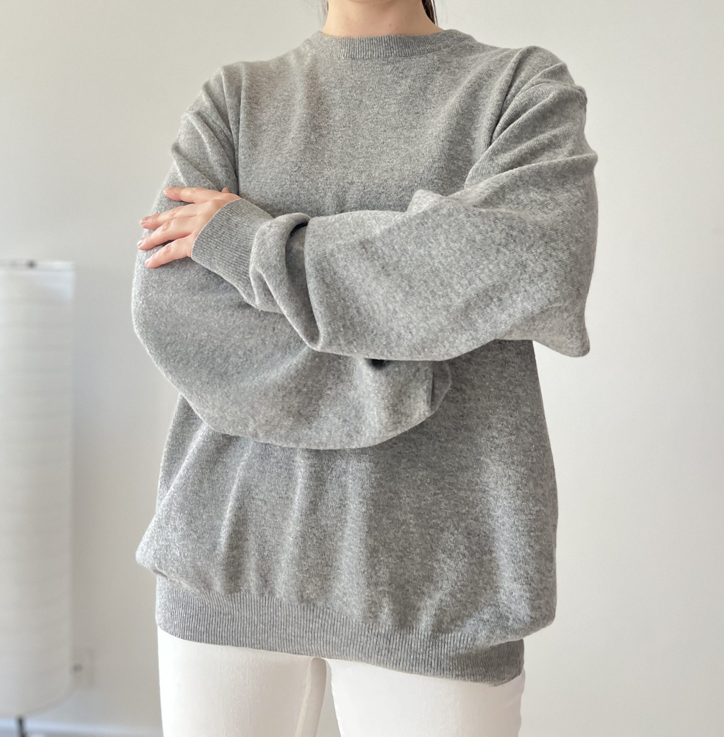 Długi szary miękki sweterek 70% wełna