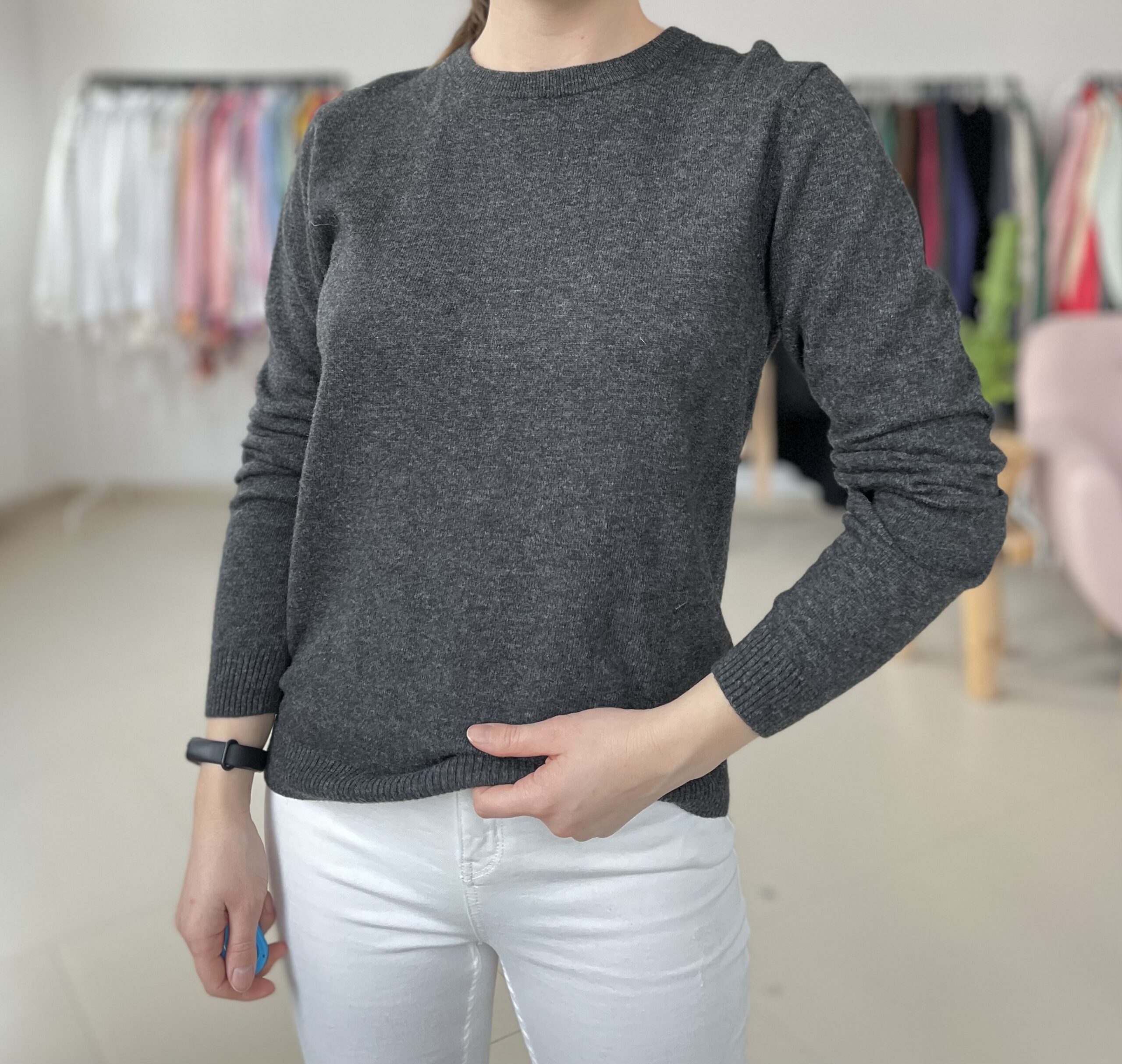 Grafitowy sweterek 80% welny.