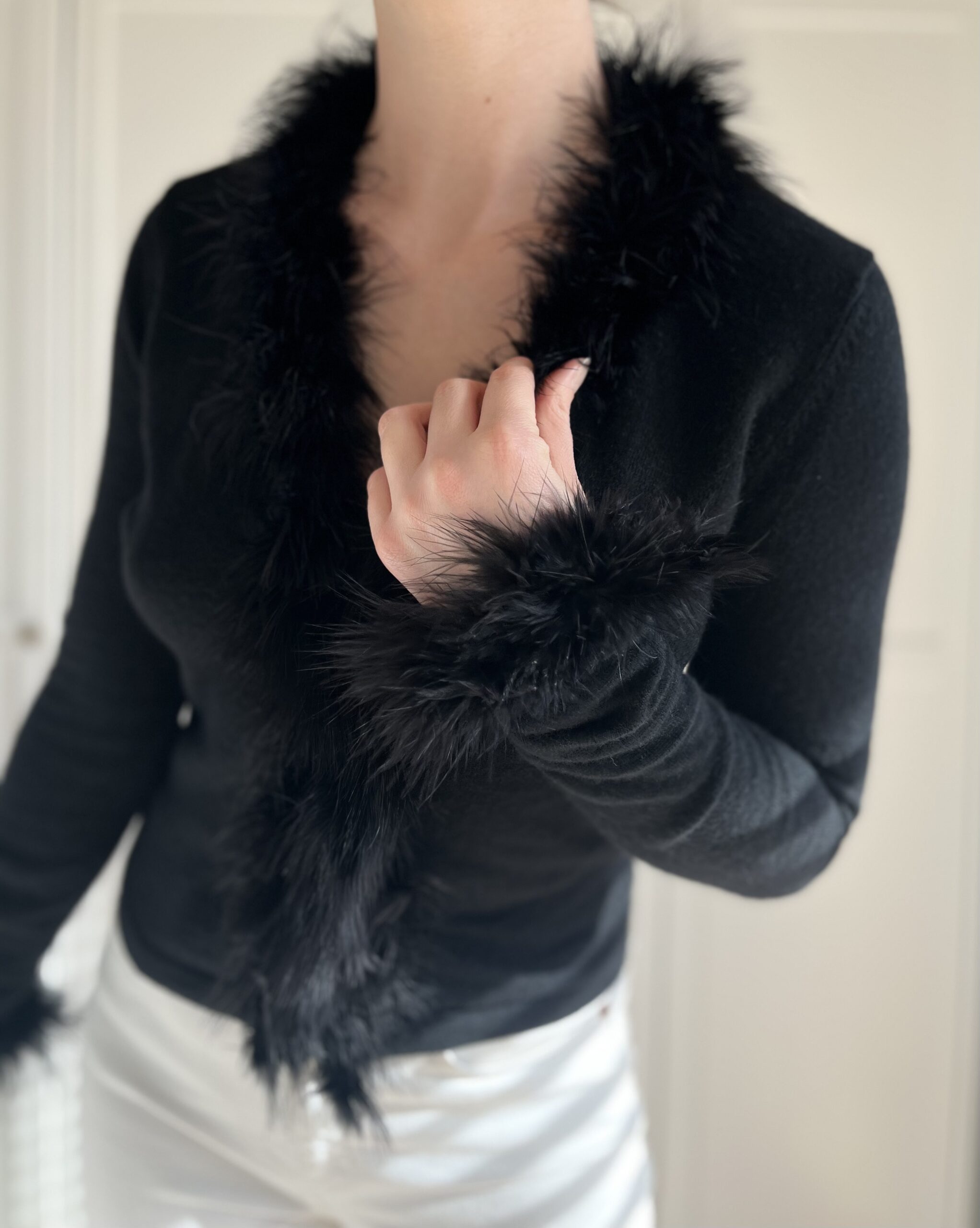 Czarny sweterek z głębokim dekoltem Benetton 80% wełna