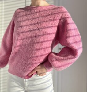 Puszysty różowy sweterek brytyjskiej marki Hush 30% alpaka, 27% wełna, 43% poliamid