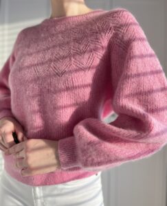 Puszysty różowy sweterek brytyjskiej marki Hush 30% alpaka, 27% wełna, 43% poliamid