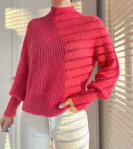 Cienki sweterek neonowy roz 40% welna, 28% moher, 27% poliester, 5% elastan)