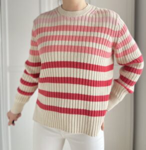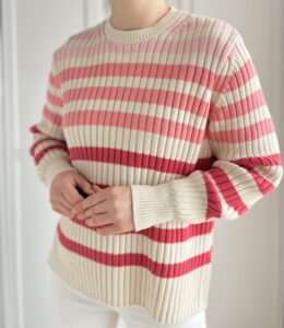 Bawełniany ciężki sweterek w różowe pasy 100% bawełna