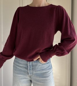 Sweterek w kolorze wina z bufiastymi rękawami 55% merino 45% bawełna