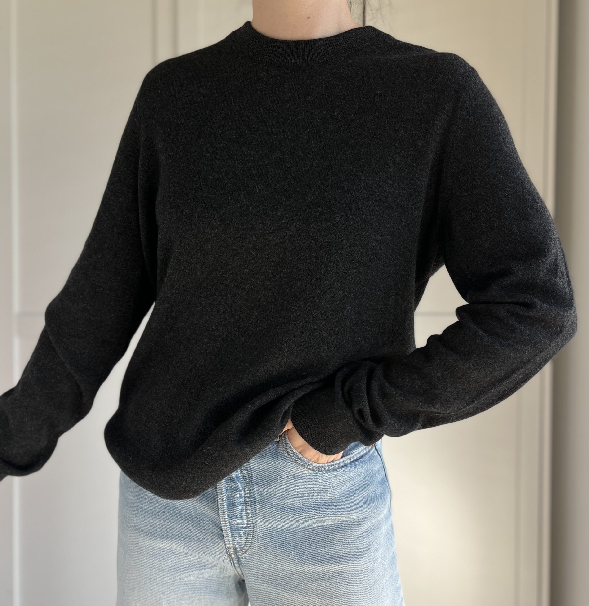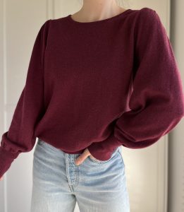 Sweterek w kolorze wina z bufiastymi rękawami 55% merino 45% bawełna