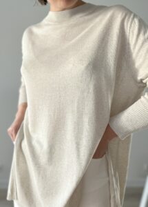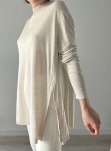 Cienki sweterek z rozcięciami po bokach 63% wiskoza 27% len 10% poliamid