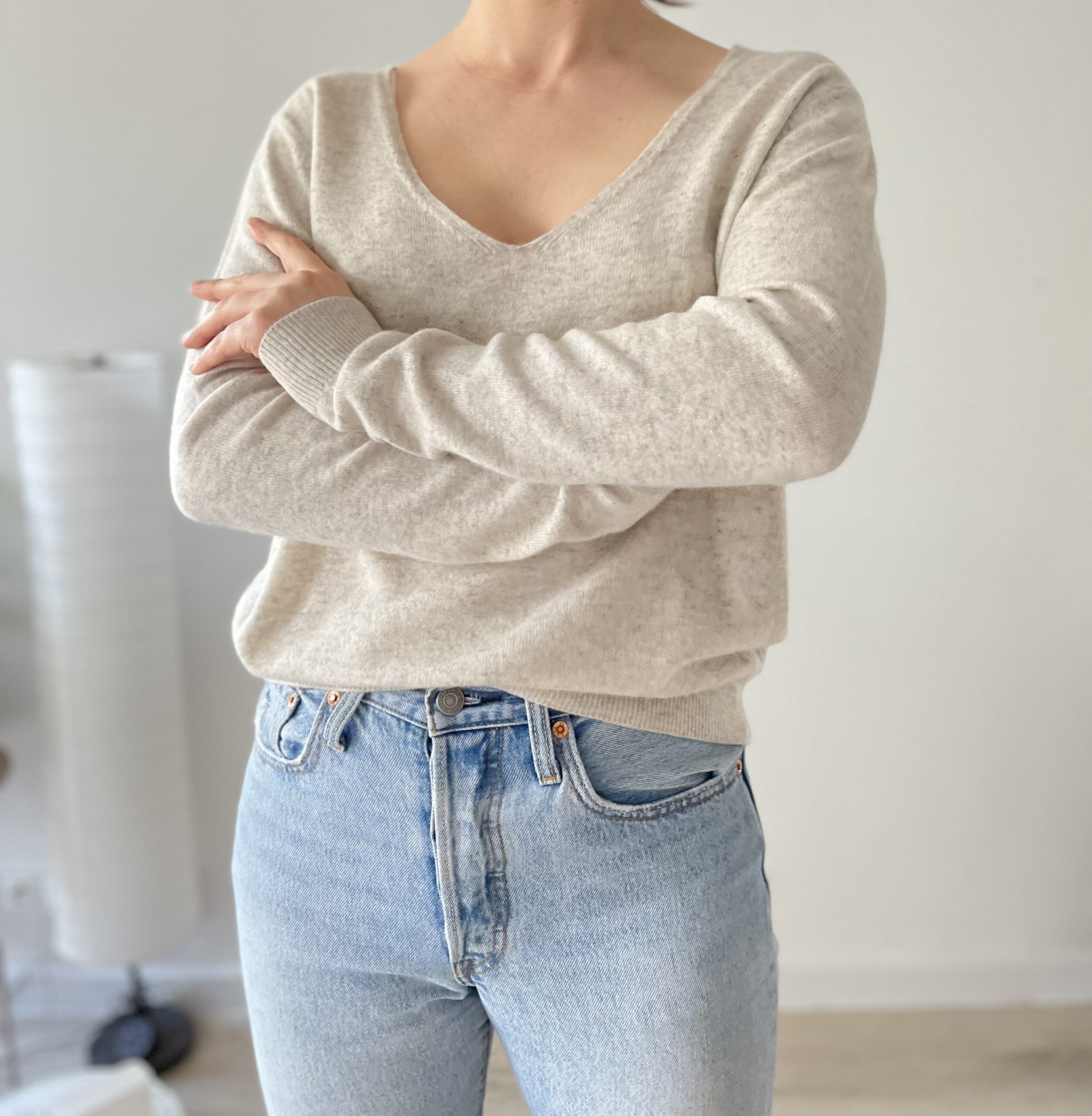 Szary melanżowy sweterek 100% kaszmir.