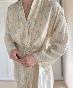 Szlafrok w pastelowe kwiaty 100% jedwab